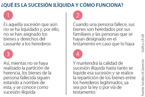 Respecto a los tiempos, dice la abogada, se debe seguir un proceso denominado ‘delación de la herencia’, el cual consiste en la aceptación o negación de dicha herencia por parte de los herederos. Con base en ello, los términos pueden cambiar. “Si una persona fallece y los herederos inician el proceso de sucesión, el contribuyente por sucesión ilíquida va a existir hasta que termine ese proceso de sucesión, lo cual puede tardar entre tres meses hasta lo máximo que puede durar un proceso, que podrían ser 15 años, sobre todo cuando hay pleitos en el juzgado, como hijos no reconocidos”, dijo.