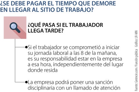 Por otra parte, expertos aclararon frente a la duda de varios empleados que el tiempo que demore la persona en llegar a su trabajo después de la hora establecida será el mismo que la empresa le puede exigir reponer o le pueden sancionar. “En términos generales el trabajador si debería compensar el tiempo o el empleador podría descontárselo porque no hubo prestación del servicio”, argumenta Karla Sofía Escobar, socia de CMM Abogados, aunque todo depende de los términos del empleador.