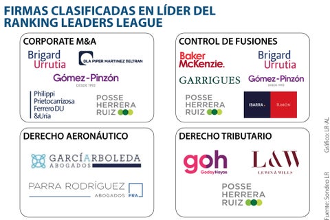 Las primeras conclusiones del estudio de Leaders League arrojan que la firma de abogados con más presencia en sección líder es Brigard Urrutia con seis apariciones en corporate M&A, control de fusiones, derecho empresarial, fusiones y adquisiciones, reestructuraciones e insolvencias y banca y finanzas; a esta firma le sigue Posse Herrera Ruiz con cinco menciones. Por otro lado, hay un empate de otras dos firmas que aparecen clasificadas en cuatro ocasiones en categoría líder: Gómez-Pinzón y DLA Piper Martínez Beltrán. Con tres apariciones está Philippi Prietocarrizosa Ferrero DU & Uria y, finalmente, dos despachos comparten la cuarta casilla con dos apariciones en la mencionada clasificación: Lewin & Willis, Godoy Hoyos, Baker McKenzie.